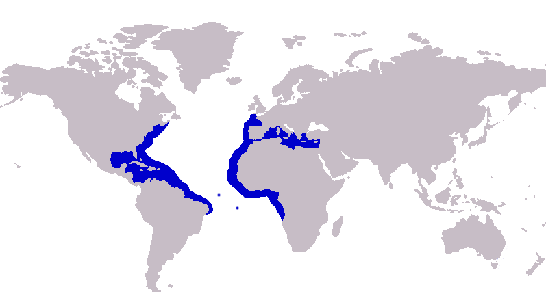 Широко распространены в умеренных, субтропических и тропических водах Атлантического океана между 46° с. ш. и 32° ю. ш. Восточная Атлантика: от прибрежья Англии вдоль побережья Франции до Сенегала и Анголы, включая Средиземное море. Западная Атлантика: от Новой Шотландии (Канада) до Бразилии, включая Багамские, Карибские и Антильские острова, Мексиканский залив и Карибское море[3].
