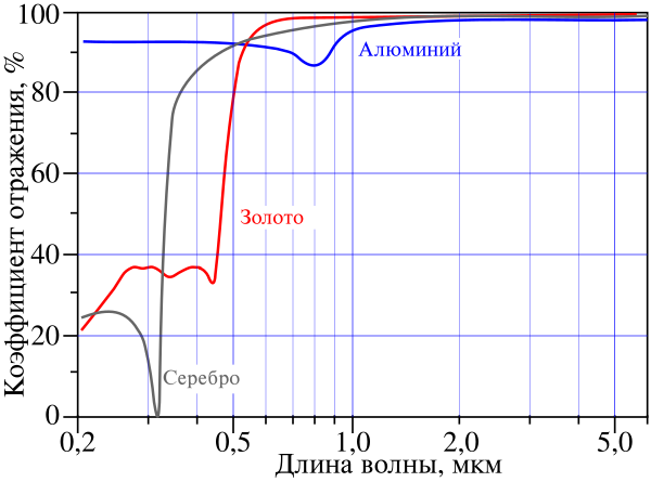 Причиной того, что цвет золота отличается от цвета большинства металлов, является малость энергетической щели между полузаполненной 6s-орбиталью и заполненными 5d-орбиталями[17]. В результате золото поглощает фотоны в синей, коротковолновой части видимого спектра, начиная с примерно 500 нм, но отражает более длинноволновые фотоны с меньшей энергией, которые не способны перевести 5d-электрон на вакансию в 6s-орбитали (см. рис.). Поэтому золото при освещении белым светом выглядит жёлтым. Сужение щели между 6s- и 5d-уровнями вызвано релятивистскими эффектами — в сильном кулоновском поле вблизи ядра золота орбитальные электроны движутся со скоростями, составляющими заметную часть скорости света, причём на s-электронах, у которых максимум плотности орбитали находится в центре атома, эффект релятивистского сжатия орбитали сказывается сильнее, чем на p-, d-, f-электронах, чья плотность электронного облака в окрестностях ядра стремится к нулю. Кроме того, релятивистское сжатие s-орбиталей увеличивает экранировку ядра и ослабление притяжения к ядру электронов с более высокими орбитальными моментами (непрямой релятивистский эффект). В целом, 6s-уровень снижается, а 5d-уровни растут[18][19].