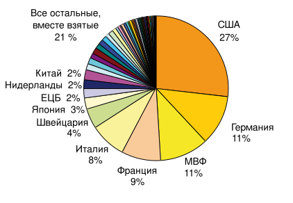 | № | Страна/организация | Золото (тонн) |