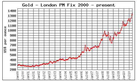 - Динамика цена на золото в рублях за грамм