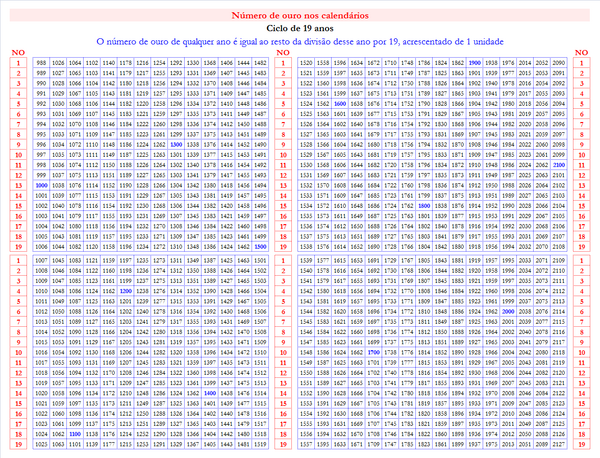 Золотое число, как его позже назвали, впервые появилось в календаре, составленном Аббоном Флери около 1000 года. Около 1162 года некий мастер Вильгельм назвал это число золотым числом, «потому что оно более ценно, чем другие числа»[5]. Термин «золотое число» стал широко известен и использовался, в частности, благодаря вычислительной поэме «Масса Компоти», написанной Александром де Вилья Деи около 1200 года[6].