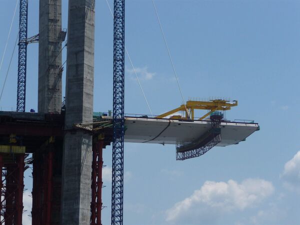 14 апреля 2012 года: была установлена центральная секция моста, соединившая его северную и южную части[5].
