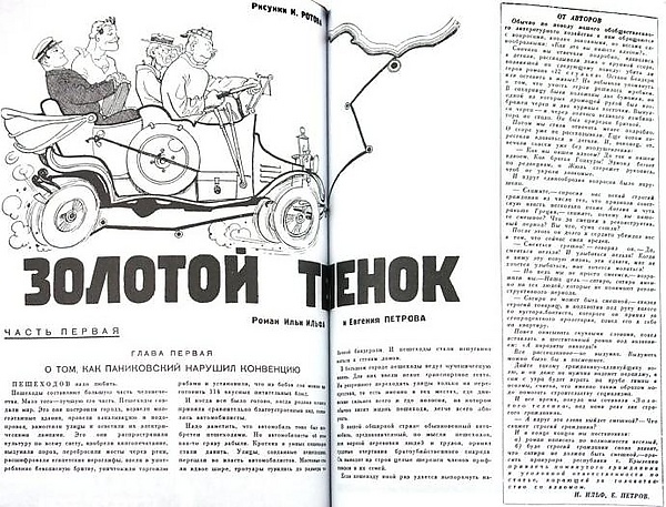 Схожесть творческого почерка авторов «Золотого телёнка» и Юрия Олеши литературовед Мариэтта Чудакова объясняла тем, что писатели, связанные между собой товарищескими отношениями, годами вырабатывали общую манеру письма[159]. Все трое были одесситами, прибывшими в начале 1920-х в Москву. В редакции газеты «Гудок» Ильф, Олеша и приехавший из Киева Булгаков — самые, по замечанию Константина Паустовского, «весёлые и едкие люди» столицы — работали в одном кабинете за одним длинным столом. Илья Арнольдович и Юрий Карлович жили в тесной комнате, примыкавшей к типографии[83]. Как рассказывал впоследствии Олеша, Ильф относился к нему как к младшему брату[160], и эта дружба позволяла литераторам полемизировать между собой. К примеру, воспроизводя диалог «о новой жизни», который в поезде, направляющемся на Турксиб, ведут австрийский и советские журналисты, создатели книги о великом комбинаторе заочно дискутировали с Олешей, развивавшем в романе «Зависть» аналогичную тему[161].