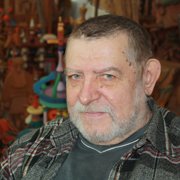 Основные произведения, выполненные в дереве: игрушки-каталки: «Конь-огонь» (1993 г.); «Кот-Котофеич» (1995 г.); «Собак-Собакевич» (1995 г.); «Дракончик» (2011 г.); «Клоун» (2011 г.); «Троянский конь» (2011 г.); . Кинетические композиции «Ковчег» (1995 г.) и «Древо, творческая дача на Бирюсе» (2006—2012 гг.); Многофигурная игровая композиция «Раешник» (1995 г.)[3].