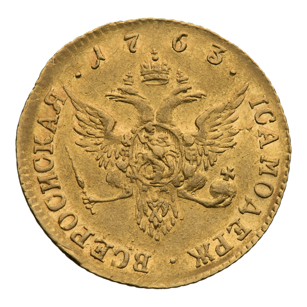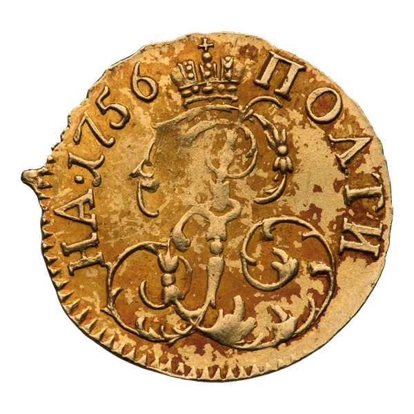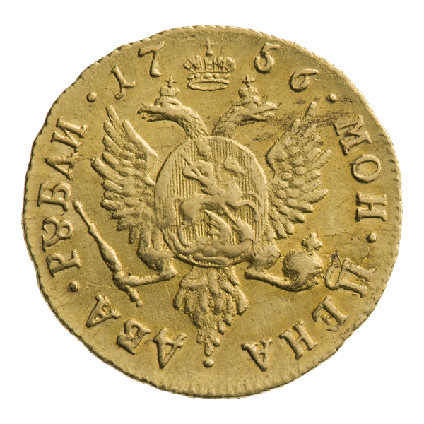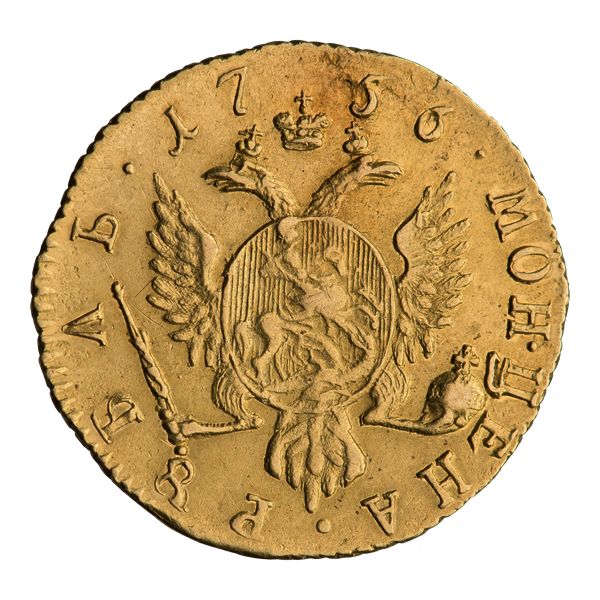 | 1 рубль | 1756 | Пробная монета Монета для дворцового обихода Аверс: |