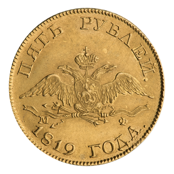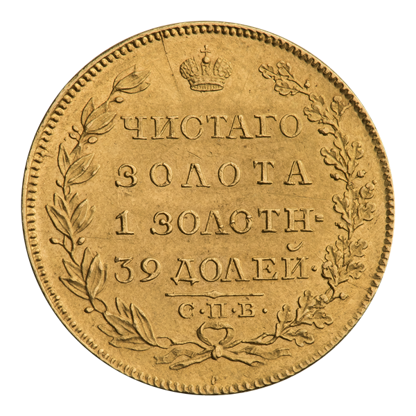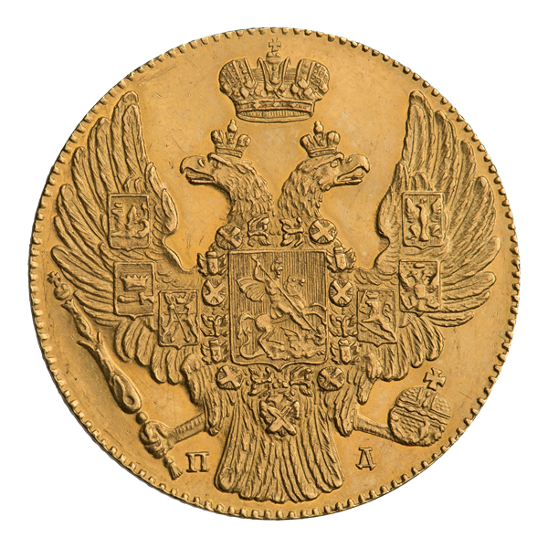 | 5 рублей | 1832 | Памятная монета «В память начала чеканки из золота Колывано-Воскресенских приисков» Аверс: |