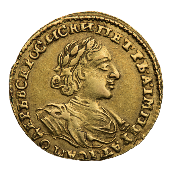 Золотые монеты Российской империи берут своё начало с монетной реформы Петра I, которому удалось создать русскую золотую ходячую монету.[1] Первой золотой монетой стал червонец без указания номинала, отчеканенный на Кадашевском монетном дворе в 1701 году. Создание ходячей золотой монеты было вызвано необходимостью выпуска монет большого номинала, в то время как попытки выпустить серебряные двухрублевики в конце правления Петра I не увенчались успехом.[1]