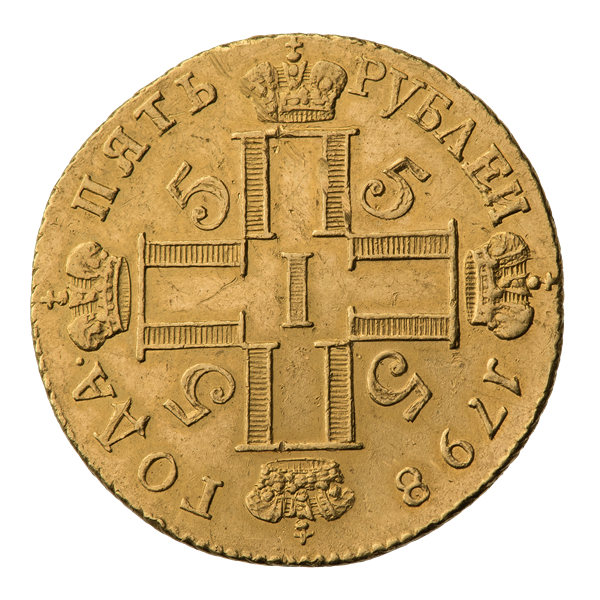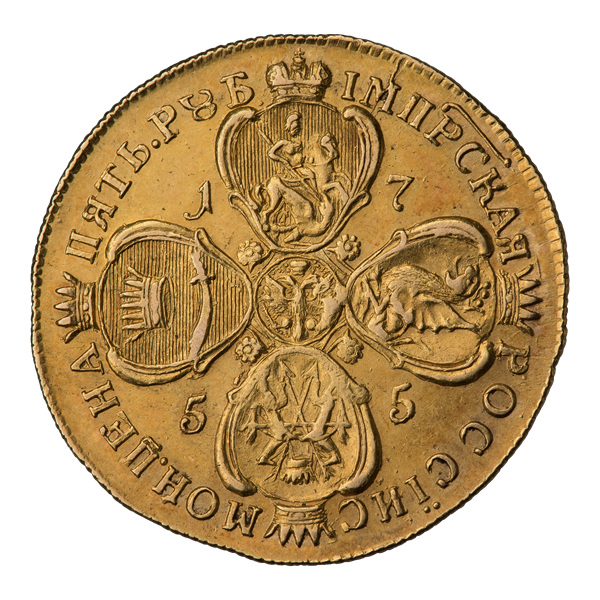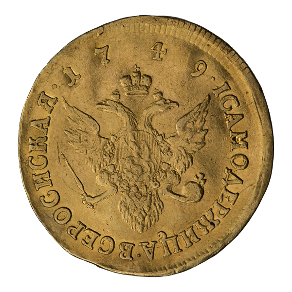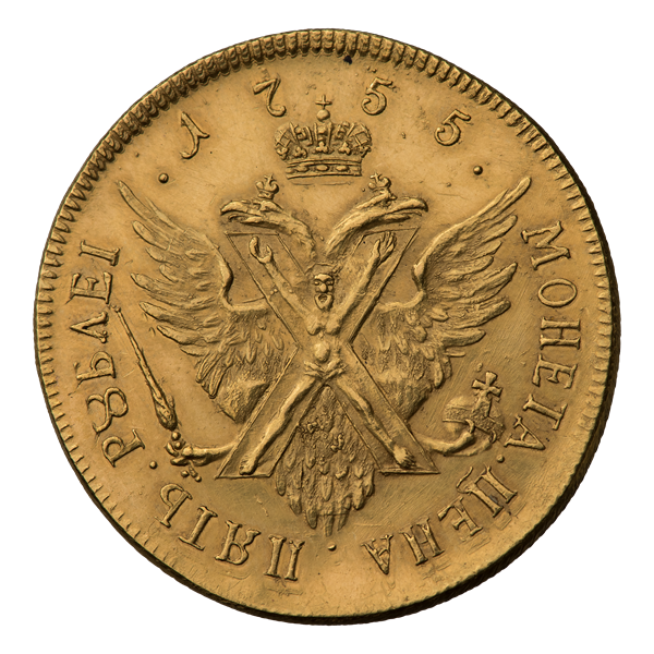 | 5 рублей | 1755 | Пробная монета (новодел)[34] «Елизаветин золотой» Аверс: |