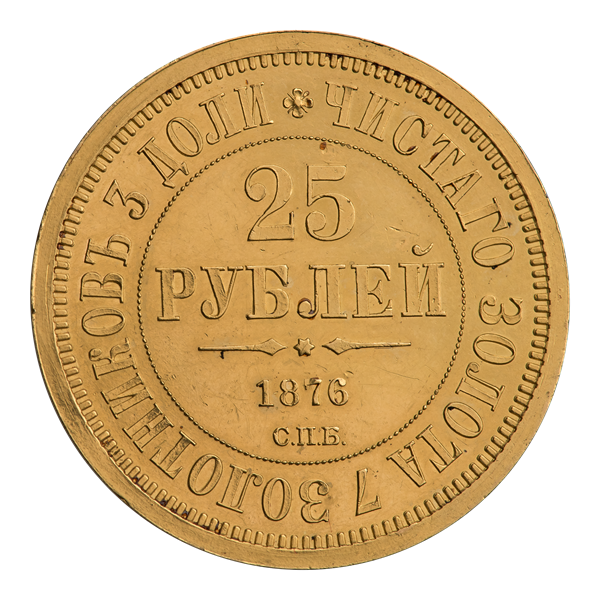 | 25 рублей | 1876 | Памятная монета «На 30-летие великого князя Владимира Александровича» Аверс: |