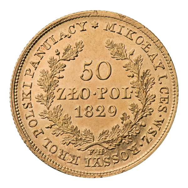 | 50 злотых | 1827, 1829 (изъяты из обращения в 1847) |