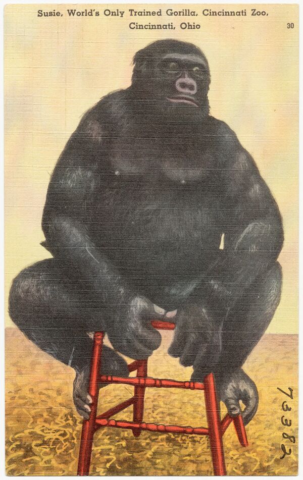 В 1931 году в зоопарке появилась горилла по имени Сьюзи. Она была поймана в Бельгийском Конго, некоторое время прожила во Франции, затем в августе 1929 года прибыла в США на дирижабле «Граф Цеппелин». Два года она гастролировала по стране с цирком Ringling Bros. and Barnum & Bailey Circus, после чего некий Роберт Салливан выкупил её за 4500 долларов (ок. 66 500 долларов в ценах 2018 года)[4] и сдал в аренду зоопарку Цинциннати. При Сьюзи остался её дрессировщик, который научил обезьяну принимать пищу с помощью ножа и вилки, и они давали в зоопарке по два представления в день. Сьюзи стала «звездой» зоопарка Цинциннати: на её «день рождения», 7 августа 1936 года, поздравить гориллу пришли около 16 000 человек. Сьюзи скончалась 29 октября 1947 года. Её тело было пожертвовано Университету Цинциннати, где скелет Сьюзи стал экспонатом выставки вуза, пока не был уничтожен пожаром в 1974 году.