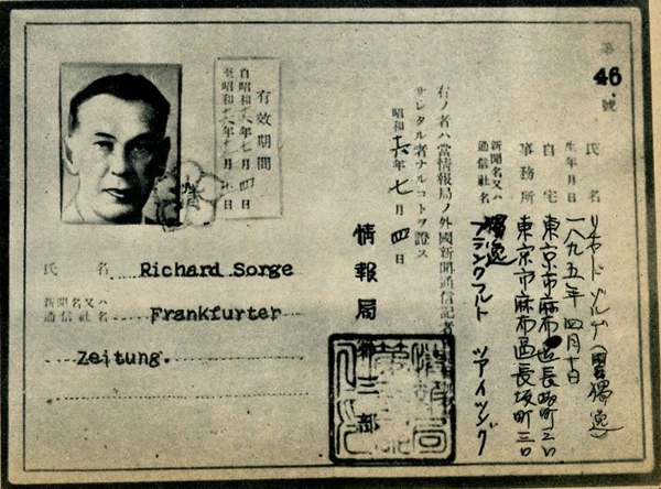 В 1933 году было принято решение о направлении Зорге в Японию, куда он прибыл 6 сентября 1933 года в качестве корреспондента влиятельных немецких газет «Берлинер бёрзен курьер», «Франкфуртер цайтунг», «Теглихе рундшау», «Дойче фольксвирт», «Геополитик» и голландской газеты «Алхемеен хандельсблат»[26]. С 6 сентября 1933 по 18 октября 1941 года Зорге работал в нелегальной резидентуре советской военной разведки в Японии. Перед этим он посетил Францию, где встретился с курьером советской разведки, а затем — США, где на основании рекомендательного письма профессора из Мюнхена Карла Хаусхофера японскому послу в США Кацуи Дебуси сумел получить от японского посольства рекомендательное письмо в министерство иностранных дел Японии[27].