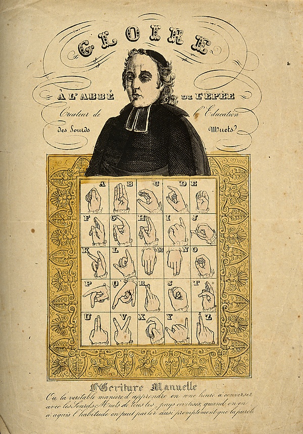 Аббат ву л`Эпе (18 в.) обучился жестовому языку у своих воспитанников (они пользовались французским жестовым языком), разработал метод обучения глухих чтению и письму по-французски. Аббат придерживался мнения, что глухим обязательно нужно овладевать звучащим языком[3].