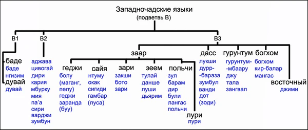 Родственные языки: польчи, барам, дир (барам-дутсе), були, лангас (ньямзак, лундур) и лури |