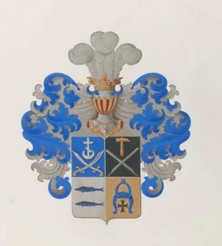 Щит четверочастный. В первой, лазоревой части, два на крест положенные дугообразные с золотыми рукоятями меча, над которыми серебряный Греческий крест на серебряном же рогами вверх полумесяце. Во второй чёрной части, два на крест положенные серебряные ружейные ствола, над которыми золотой молоток. В третьей, серебряной части, две лазоревые рыбы. В четвёртой, золотой части, лазоревое стремя, чрез которое продета такая же подкова, сопровождаемая внутри чёрным крестом Св. Иоанна Иерусалимского.
