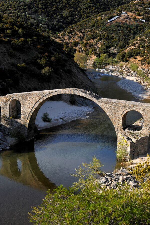 Имеется арочный каменный мост, построенный в XVII—XVIII веках на реке Компсатос (Куру)[7].