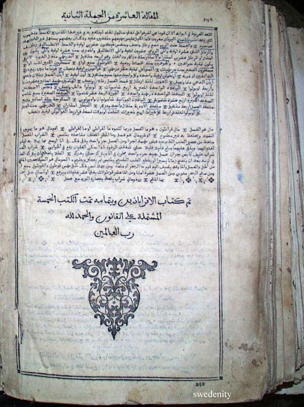 Копия арабской рукописи «Канон врачебной науки» (Аль-Ганун Фи ат-Тибб) Ибн Сины 1030 года, сделанная в 1143 в Багдаде. Институт рукописей Национальной академии наук Азербайджана в Баку
