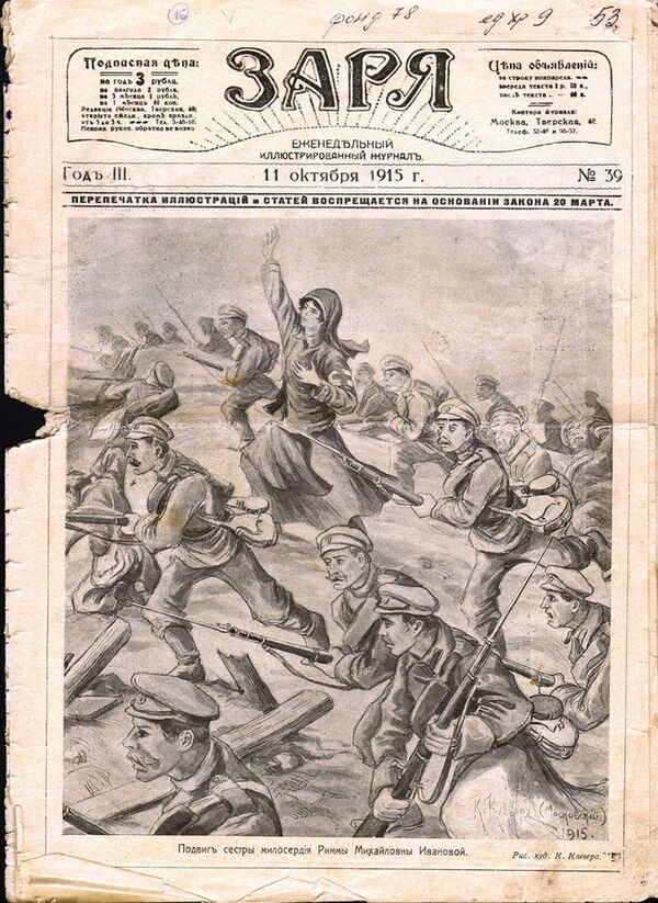 Государь Император 17 сентября соизволил почтить память покойной сестры милосердия Риммы Михайловны Ивановой орденом Святого Георгия 4-й степени. Сестра Иванова, невзирая на уговоры полкового врача, офицеров и солдат, всегда перевязывала раненых на передовой линии под страшным огнём, а 9 сентября, когда были убиты оба офицера 10-й роты 105-го Оренбургского полка, собрала к себе солдат и, бросившись вперед вместе с ними, взяла неприятельские окопы. Здесь она была смертельно ранена и скончалась, оплакиваемая офицерами и солдатами. Корпус с глубоким огорчением и соболезнованием свидетельствует уважение семье покойной, вырастившей героиню — сестру милосердия. О чём прошу сообщить родителям и родным, жительствующим на ул. Лермонтовской, 28.