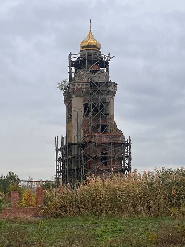 - В центре станицы есть живописная колокольня разрушенной церкви Сретение Господне.