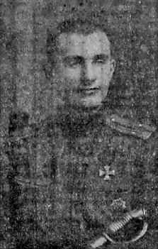 За то, что 9 мая 1915 года, при атаке укрепленной позиции у с. Конюшки Семеновские, под губительным огнем, выбил противника из окопов и захватил действующий пулемет.