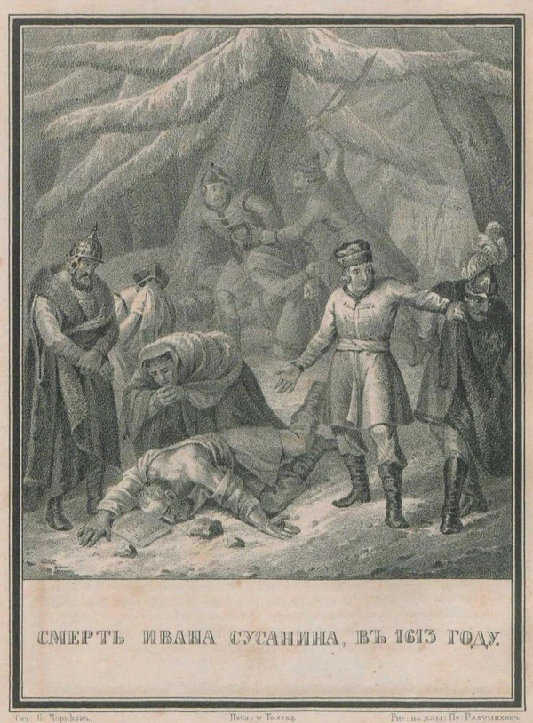 Страдание Сусанина есть происшествие, само по себе очень обыкновенное в то время. Тогда козаки бродили по деревням и жгли и мучили крестьян. Могло быть, что разбойники, напавшие на Сусанина, были такого же рода воришки, и событие, столь громко прославленное впоследствии, было одним из многих в тот год. Чрез несколько времени зять Сусанина воспользовался им и выпросил себе обельную грамоту.