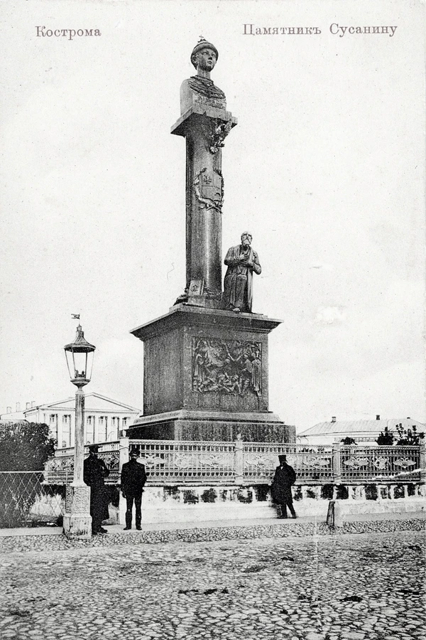В 1838 году Николаем I был подписан указ о даровании центральной площади Костромы имени Сусанинская и возведении на ней памятника «во свидетельство, что благородные потомки видели в бессмертном подвиге Сусанина — спасении жизни новоизбранного русской землёй царя через пожертвование своей жизни — спасение православной веры и русского царства от чужеземного господства и порабощения».
