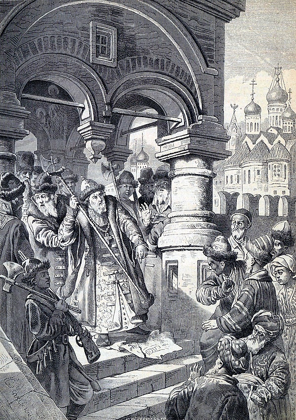 Божиею милостью великий осподарь Русские земли велики князь Иван Васильевич, царь всеа Русии, Володимерськи и Московски и Новгородски и Псковски и Югорски и Вятски и Пермськи и иных[15]