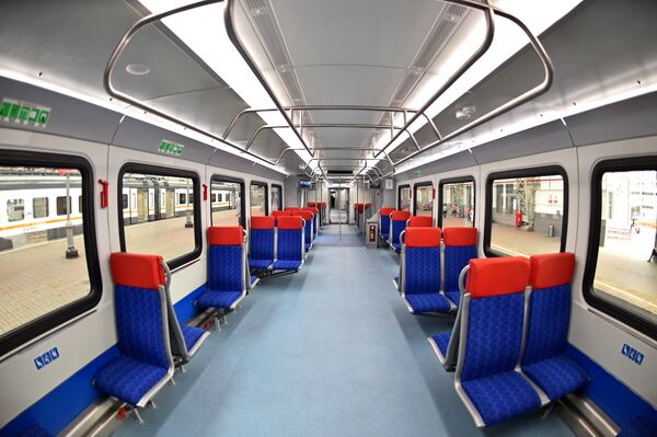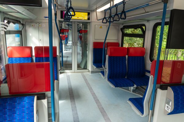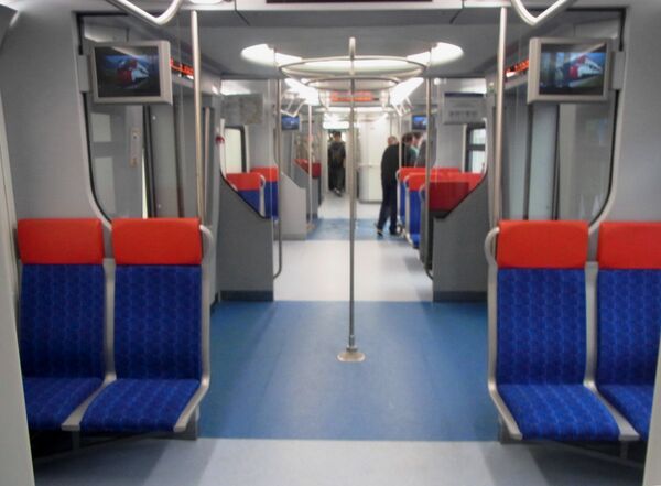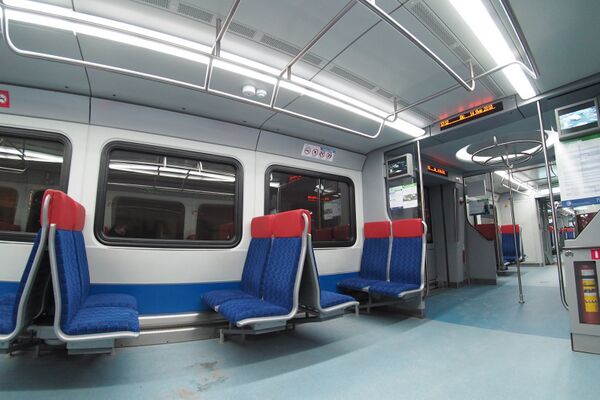Салон промежуточного вагона городского исполнения поездов базового типа имеет 58 посадочных мест, а первой и второго типа — 68 мест[43][42].