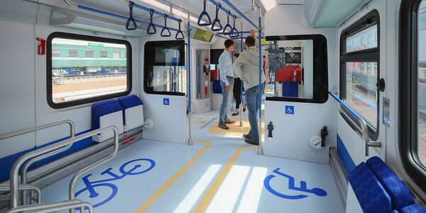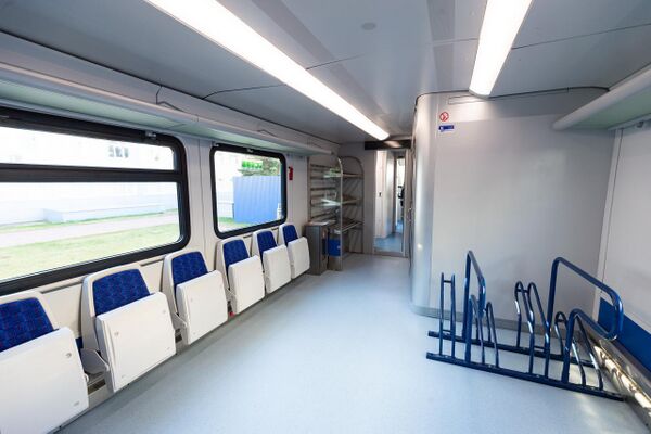 Салон головного вагона городского исполнения поездов базового типа имеет 24 посадочных места, а первого и второго типа — 28 мест[43].