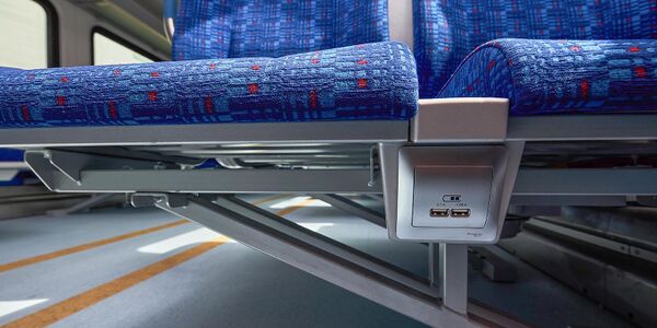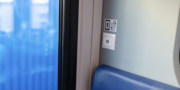 Салоны электропоездов оснащены беспроводными модулями стандарта Wi-Fi для возможности подключения пассажиров к Интернету с мобильных устройств[41][42]. В салонах первого и второго типа по сравнению с базовым также оборудованы разъёмы стандарта USB для зарядки электронных устройств напряжением в 5 В. В салоне типа 1.0 USB-розетки имеют по два вертикально ориентированных разъёма и расположены во входных зонах по бокам от дверей в боковых стенках, а также со стороны посадочных зон в стенках перегородок входных зон над сиденьями в углу у окна[41]. В салоне типа 2.0 USB-розетки по два горизонтально расположенных разъёма и размещены под каждым креслом посередине, а также в боковине полусидений в тамбурной зоне[42]. Таким образом в салоне первого типа всего имеется по 32 разъёма на вагон[41], а в салоне второго типа — по 38 разъёмов на головной и по 84 на промежуточный вагон[42]. В тамбурных зонах салона второго типа слева от дверей также имеется по одной стандартной розетке на 220 В[42], ещё две такие розетки размещены в передней стенке салона головного вагона слева от двери в служебный тамбур кабины[57].