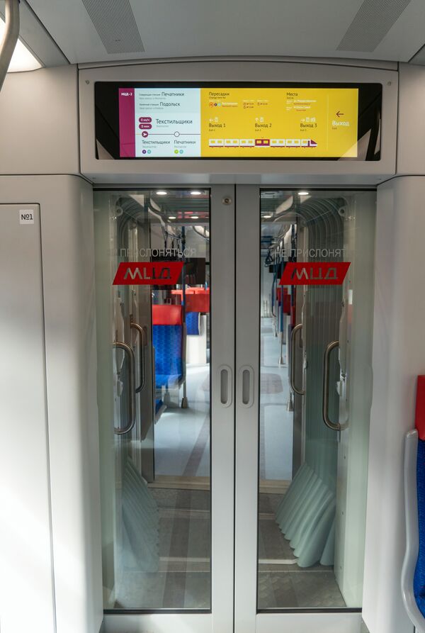 Пассажирский салон поезда оснащён информационными дисплеями и электронными табло для информирования пассажиров о маршруте следования и вывода другой полезной информации, системой видеонаблюдения для вывода машинисту и фиксации аварийных ситуаций и противоправных действий пассажиров, системой голосового оповещения и экстренной связи пассажиров с машинистом[41][42].
