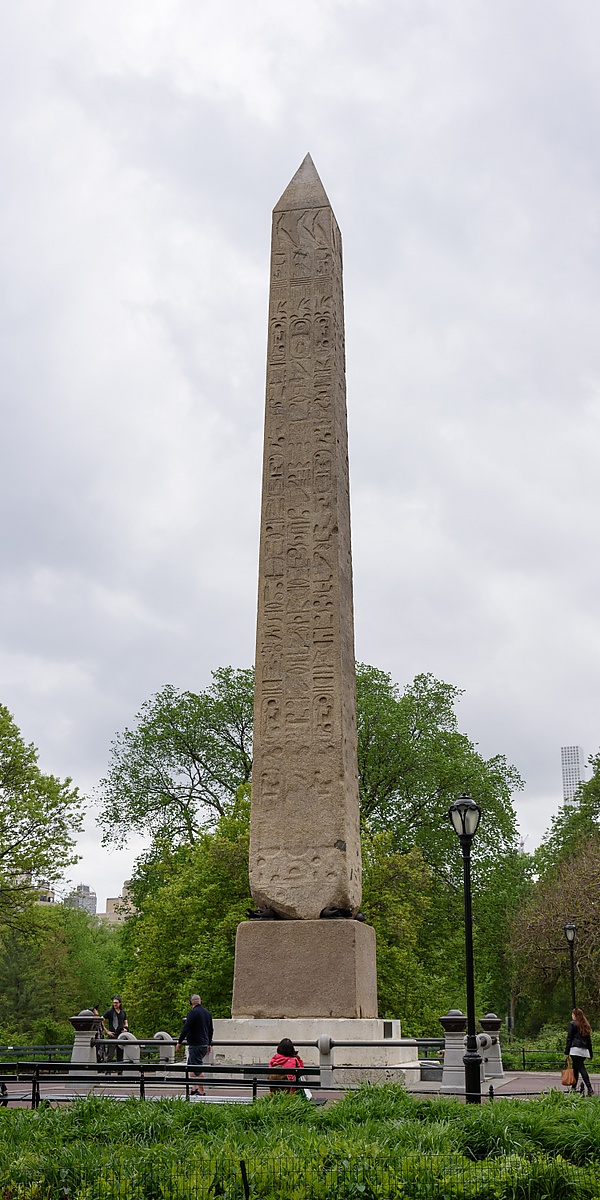 Изготовленный из красного гранита, обелиск высотой около 21 метра весит около 200 тонн[5] и испещрён египетскими иероглифами. Первоначально он был воздвигнут в египетском городе Гелиополе по приказу Тутмоса III в 1475 году до н. э.[5]. Гранит для обелиска добывали в каменоломнях Асуана у первого порога Нила. Надписи были добавлены примерно 200 лет спустя Рамсесом II в память о его военных победах.