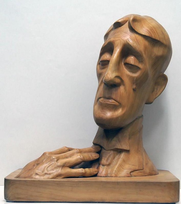 Скульптура изготовлена из дерева методом резьбы. Эта техника позволяет достичь высокой детализации. Резьба по дереву сохраняет естественную текстуру материала и подчёркивает нюансы лица поэта.