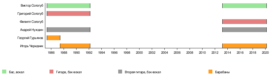 - Григорий Сологуб — гитара, вокал (1986—2009) †