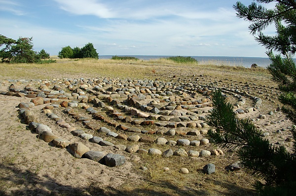 Лабиринт имеет диаметр почти 10 метров и представляет собой прочную конструкцию из уложенных на землю двойной спиралью без связующего вещества валунов диаметром 10—20 см. Рядом с лабиринтом из тех же камней выложены буквы DW и цифра 1849. По преданию, каменный лабиринт построил шведский офицер Давид Векман (David Weckman), приехавший на остров Экси в 1808 году, когда крепость Свеаборг сдалась войскам Российской императорской армии[22].