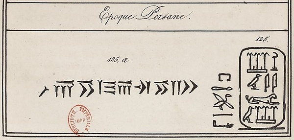 В течение следующих нескольких месяцев Шампольон применил свой иероглифический алфавит ко многим египетским надписям, определив десятки царских имён и титулов. В этот период Шампольон и востоковед Антуан-Жан де Сен-Мартен исследовали вазу Келюса, на которой был иероглифический картуш, а также текст, написанный персидской клинописью. Сен-Мартен, основываясь на более ранних работах Георга Фридриха Гротефенда, полагал, что на клинописи написано имя Ксеркса I, царя Ахеменидской империи в V веке до н. э., чья территория включала Египет. Шампольон подтвердил, что идентифицируемые знаки в картуше совпадают с именем Ксеркса, укрепив доказательства того, что фонетические иероглифы использовались задолго до греческого владычества в Египте, и поддержав прочтение клинописного текста Сен-Мартеном. Это был важный шаг в расшифровке клинописи[48].