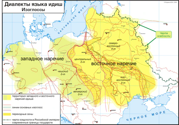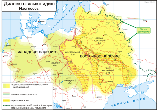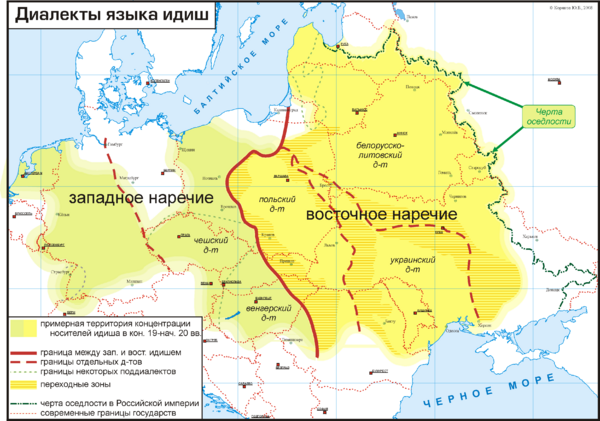 Идиш состоит из большого числа исторических диалектов, которые принято подразделять на западныe и восточныe.