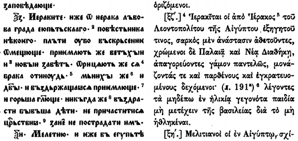 Иеракиты получили своё название от имени основателя — Иерака[1]. Иеракиты пользовались книгами Ветхого и Нового Завета; совершенно отвергали воскресение плоти. Выражения и фразы Священного Писания о воскресении толковали и понимали как относящиеся только к одной душе и называли это воскресением духовным.