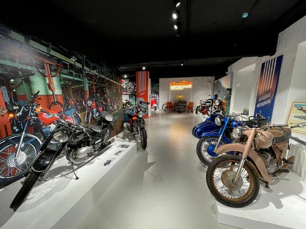 В музее собраны уникальные образцы мотоциклов Ижевского мотозавода. Атмосфера погружает поситетлей в события, связанные с началом производства легендарного мотоцикла «Иж». К примеру, здесь можно увидеть мотоцикл «Иж-49» в его подлинной комплектации. Или же уникальный и редкий мотоцикл «ИЖ Планета-Спорт», потому как выпуск данной модели почти в семь раз меньше производившихся в те же годы «Иж Планета-3» и «Иж Юпитер-3». Из более раннего экспоната семьи Кожушковых здесь представлен участник битвы за Москву — это мотоцикл DKW RT-100 (1938 года выпуска), а также немецкие мотоциклы BMW R35 и Wanderer 1Sp (Sport). В музее представлено несколько разделов[5]: