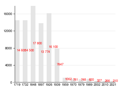 По данным Всероссийской переписи населения 1897 года численность ижоры составила 13 774 человека[39].
