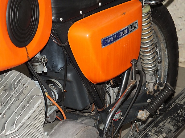 - Ручной шинный насос на переднюю трубу рамы около цилиндра двигателя (ранее — под баком)