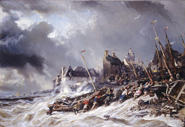 Став одним из ведущих французских маринистов романтического направления, Э. Изабе в начале своего творчества занимался почти исключительно изображением морских видов и натюрмортов. Лучшие из его произведений в этот период творчества — «Гонфлерский берег» и «Буря у берегов Дьепа».