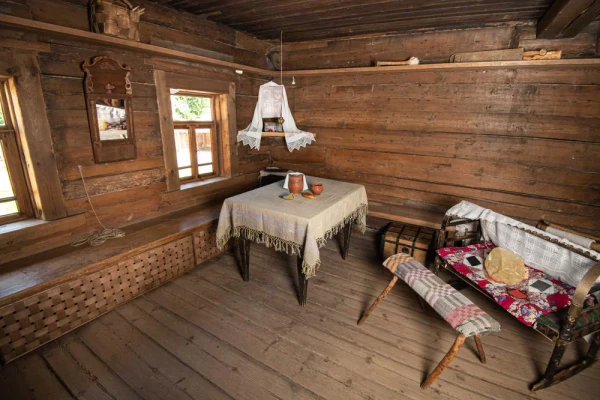 - интерьер оформляется в классическом русском стиле, преимущественно с использованием натуральных материалов.
