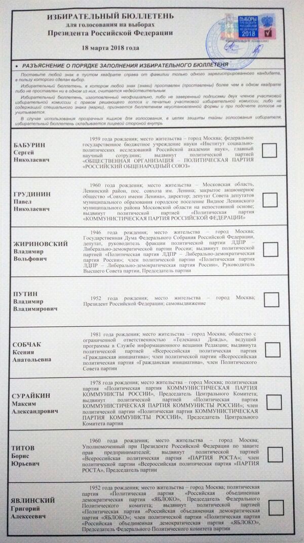 … Недействительными считаются избирательные бюллетени, которые не содержат отметок в квадратах, расположенных справа от сведений о зарегистрированных кандидатах, от позиции «За» или «Против» (в случае, предусмотренном пунктом 5.1 статьи 67 настоящего Федерального закона), или в которых знак (знаки) проставлен (проставлены) более чем в одном квадрате. …
