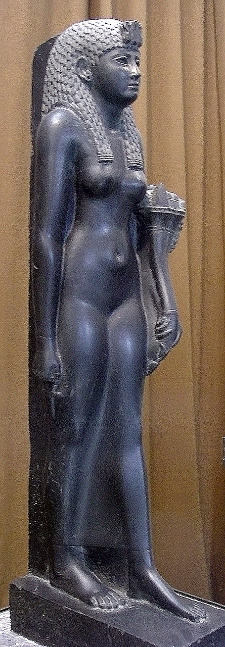 В своей книге Kleopatra und die Caesaren/«Клеопатра и Цезарион» (2006) Бернард Андреаэ утверждает, что эта египетская базальтовая статуя, как и другие идеализированные египетские портреты царицы, не содержит реалистичных черт лица и, следовательно, мало что добавляет к знаниям о внешности Клеопатры[24]. Диана Престон приходит к аналогичному выводу об исконно египетских изображениях Клеопатры: «Кроме некоторых храмовых рельефов, которые в любом случае выполнены в сильно стилизованном фараоновском стиле и дают мало подсказок о реальной внешности Клеопатры, единственные достоверные изображения Клеопатры — это изображения на монетах. Мраморная голова в Ватикане — одна из трёх скульптур, обычно, хотя и не всеми, признаваемых учёными как изображения Клеопатры»[25]. Барабара Уоттерсон пишет, что изображения Клеопатры, например, в храме Хатхор, являются скорее обычными египетскими изображениями, чем реальными портретами царицы[5]. Она отмечает, что рельеф из Дендеры показывает Клеопатру в «типичном птолемеевском стиле»[5].