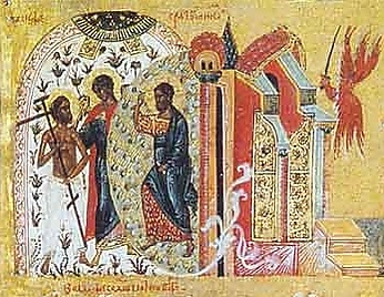 В средневековой символике символом Изгнания из рая были ворота.
