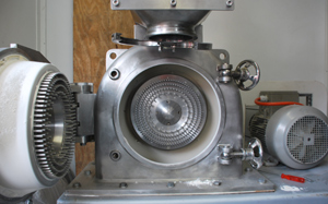 - Коллоидная мельница с ротором, вращающимся относительно статора, расположенного в долях миллиметра от него.