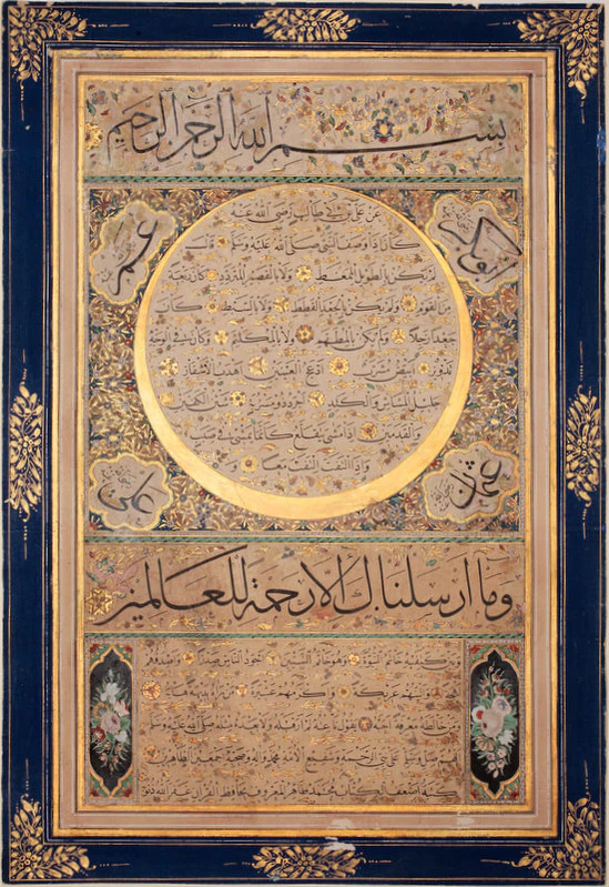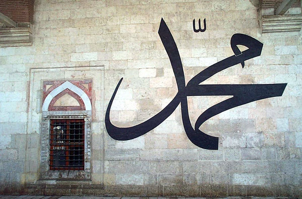 Наиболее часто встречающаяся в исламском искусстве форма изображения Мухаммеда — каллиграфическое написание его имени, разновидность монограммы круглой формы, зачастую в декорированной рамке. В подавляющем большинстве случаев изображается на арабском языке, может включать повторяющиеся формы, гоноративы, благословения и другие фразы, а также их сокращения. Встречаются также амбиграммы и частые отсылки к розе, символу Мухаммеда.