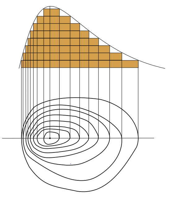 Изоли́ния (от др.-греч. ισος — «равный») или линия уровня (функции) или горизонталь — условное обозначение на карте, чертеже, схеме или графике, представляющее собой линию, в каждой точке которой измеряемая величина сохраняет одинаковое значение[1][2]. Изолинии — способ представления скалярной функции от двух переменных на плоскости. Это плоское сечение трёхмерного графика функции , параллельное плоскости . В картографии горизонталь соединяет точки равной высоты над данным уровнем, например над средним уровнем моря. Контурная карта — это карта, проиллюстрированная контурными линиями[3][4], например, топографическая карта, которая, таким образом показывает долины и холмы, а также уклон и степень сглаженности склонов. Контурный интервал контурной карты — это разность высот между последовательными линиями контура[5]. Градиент функции всегда перпендикулярен контурным линиям. Когда линии расположены близко друг к другу, величина градиента велика, изменение крутое. Набор уровней является обобщением линии контура для функций любого числа переменных. На карте, описывающей пересечение реальной или гипотетической поверхности с одной или несколькими горизонтальными плоскостями, горизонтали могут быть изогнутыми, прямыми или смешанными. Конфигурация этих горизонталей позволяет читателям карт оценить относительный градиент параметра и оценивать этот параметр в определённых местах. Горизонтали могут быть либо прослежены на видимой трёхмерной модели поверхности, например, когда фотограмметрист, просматривая стереомодель, вычерчивает линии уровня (горизонтали), либо могут быть интерполированы из расчётных высот поверхности, например, когда компьютерная программа интерполирует горизонтали по сети высотных точек. В последнем случае метод интерполяции влияет на точность отдельных горизонталей и на их отображении наклонов, ям и пиков[6].