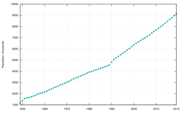 Первые годы существования Израиля были отмечены массовой иммиграцией евреев, выживших в Катастрофе, а также тех, которые, спасаясь от преследований, покидали арабские страны. С 1948 по 1958 год население Израиля возросло с 0,8 млн до 2 млн человек[62][63]. Часть иммигрантов являлись беженцами и практически не имели при себе имущества. Они были размещены во временных палаточных лагерях — «маабара́х». К 1952 году в подобных палаточных городках проживали свыше 200 тысяч иммигрантов. Для решения этого кризиса Давид Бен-Гурион потребовал и подписал соглашение с ФРГ о репарациях, получив 3 млрд марок[64].